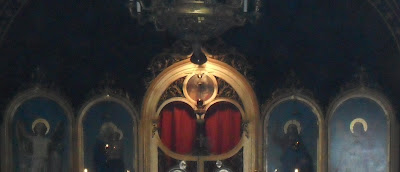 C'est pourquoi selon les rubriques de l'Eglise, les cierges dans l'église doivent être éteints. L'obscurité tombée symbolise le plus fort de la nuit au cours de laquelle le Christ, loué dans le chant des anges: "Gloire à Dieu au plus haut des cieux", est venu sur terre. La semi-obscurité de l'église facilite grandement la concentration dans la prière.